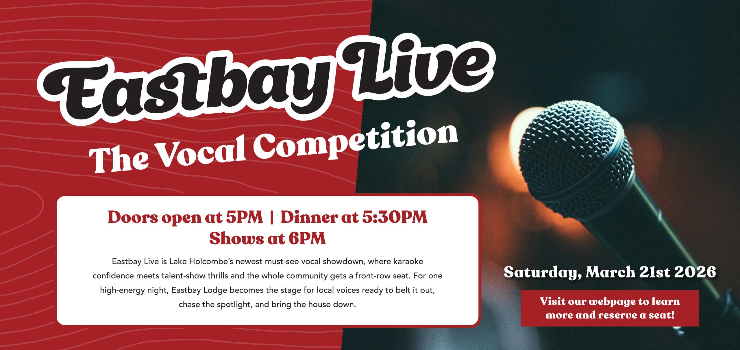 Why not Holcombe? Great food, great drinks, and great company is what Eastbay Lodge is all about. Our chef-driven menu blends classic comfort food with elevated flavors, making every meal an experience to remember.