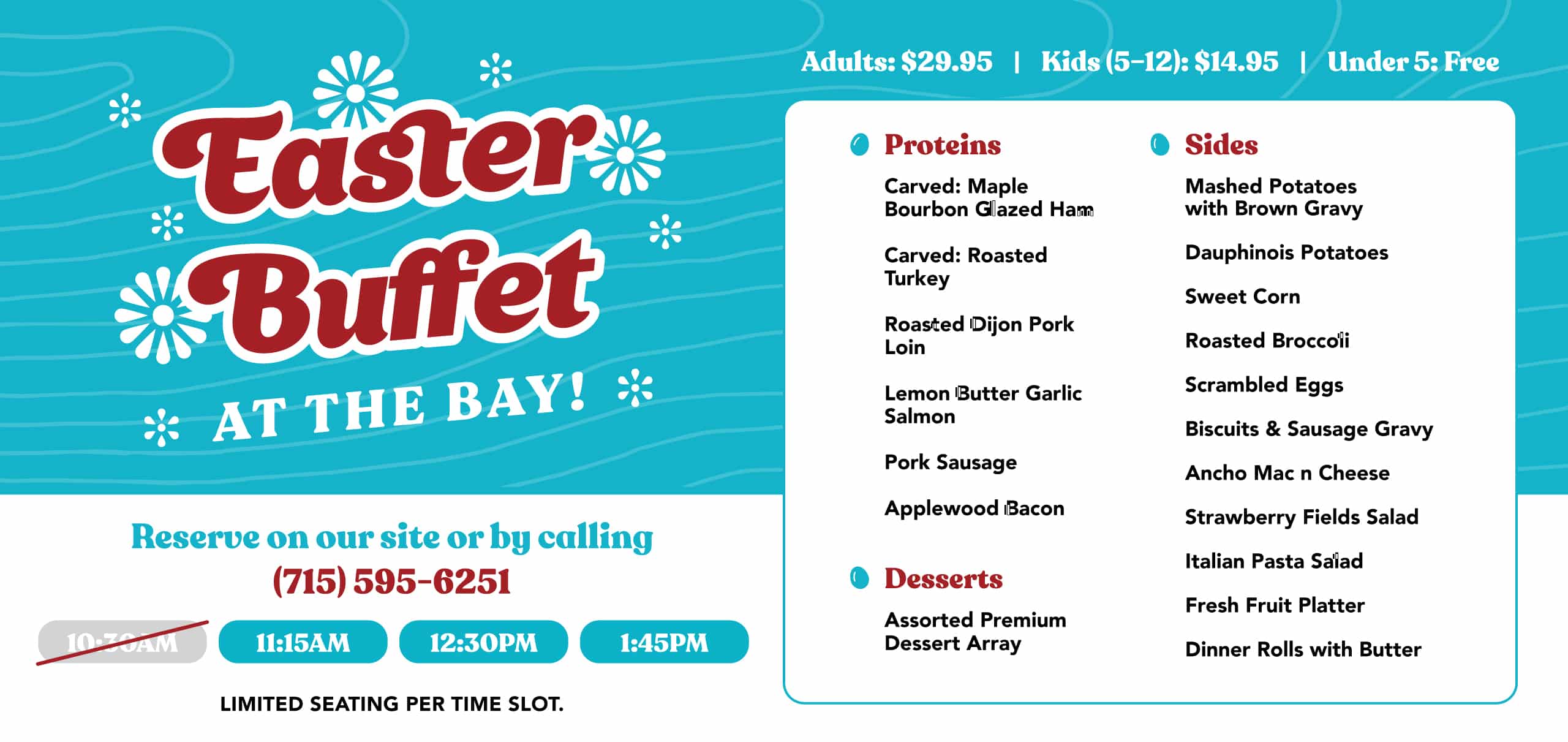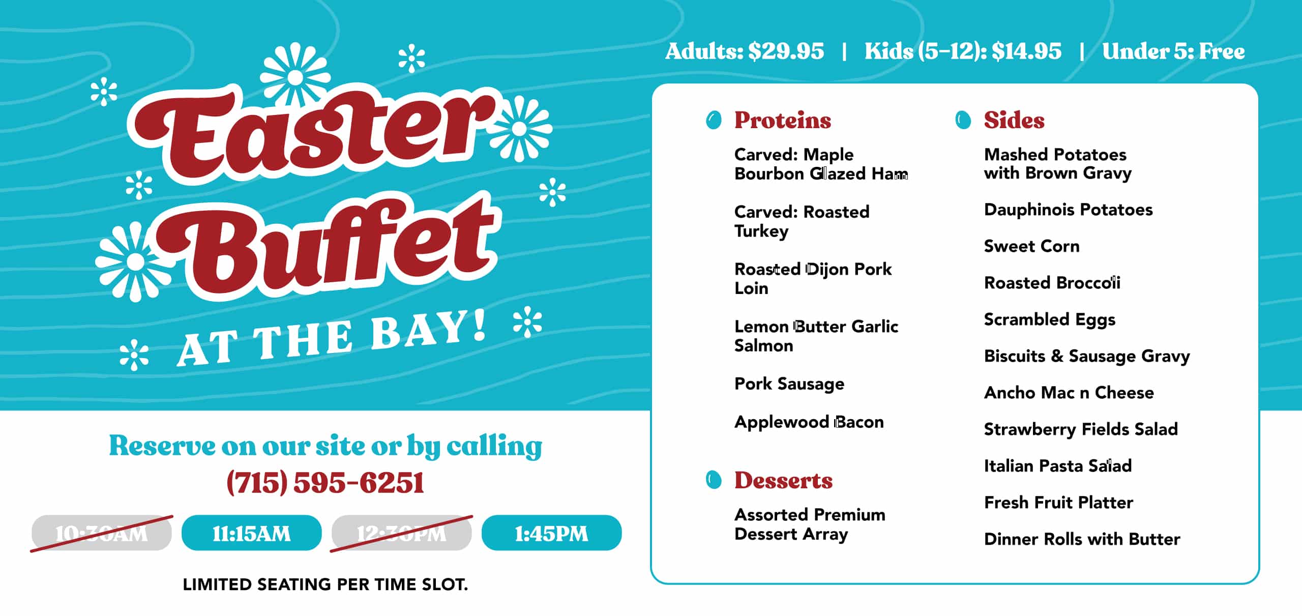 Hours may be adjusted for holidays, large lake events, private events, special celebrations, and Packers game days.