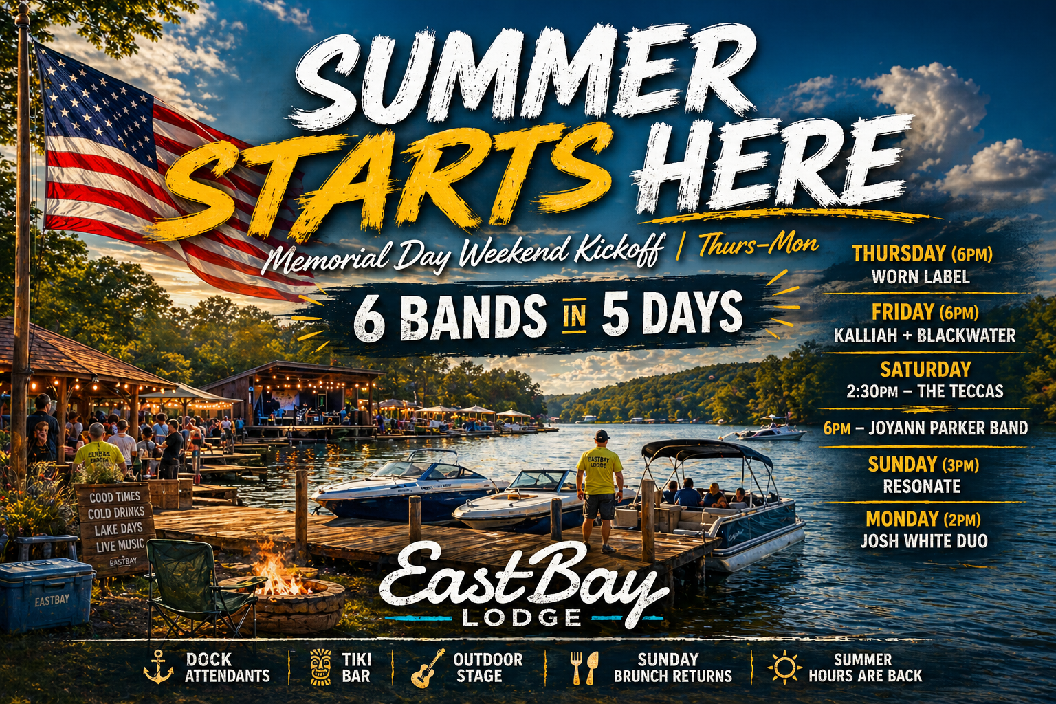 This is the weekend everything turns back on. The lake. The docks. The music. The energy. Lake season starts now… and it starts at Eastbay. Memorial Day Weekend | Thursday […]