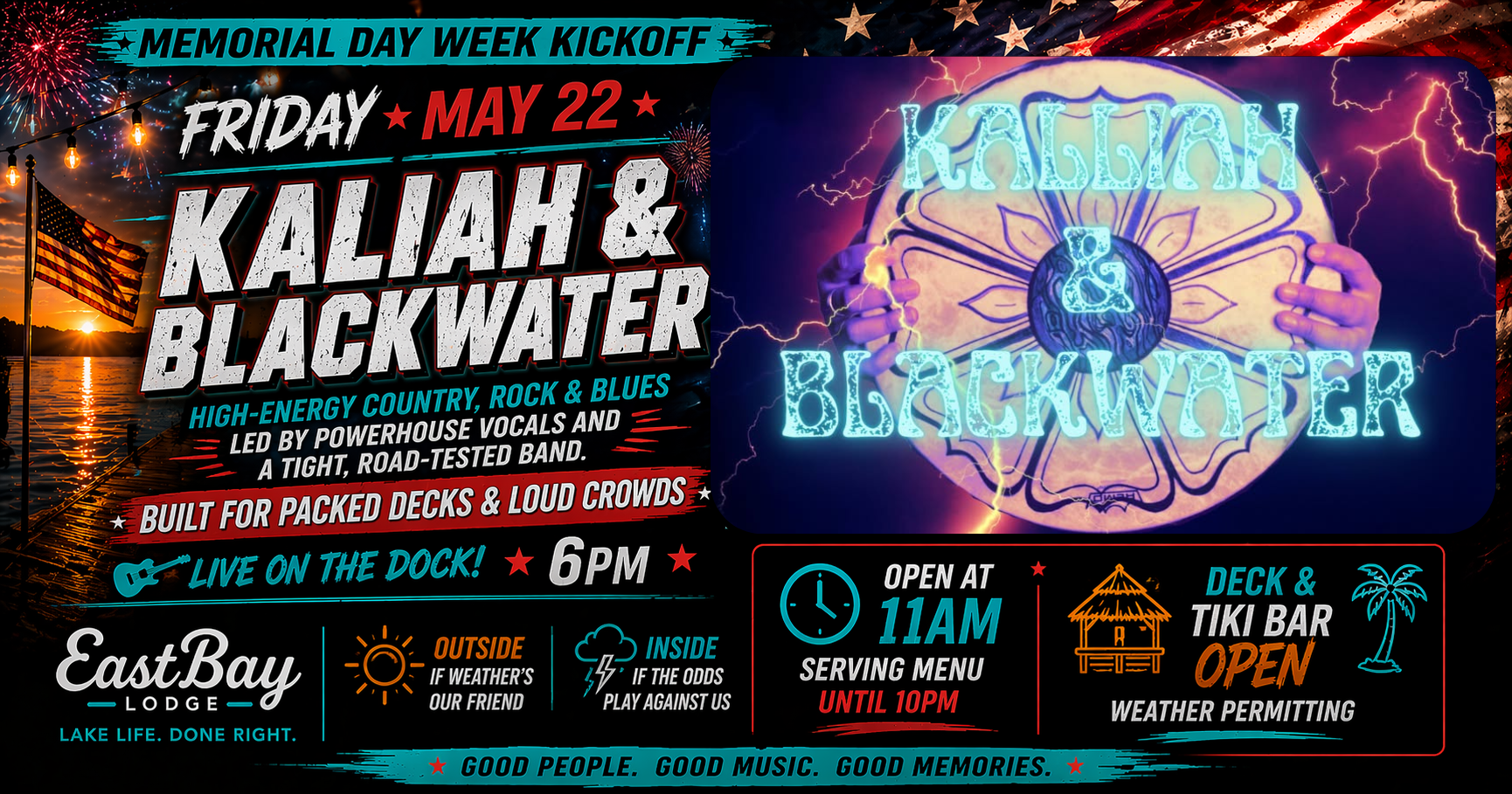 Memorial Day Weekend at Eastbay doesn’t build…it explodes into Friday. And this one? Yeah… this is the night the deck fills up. 🎸 Kaliah & Blackwater – Live Friday at […]