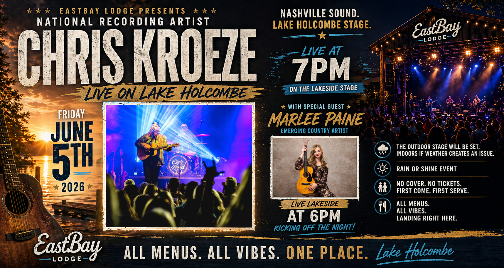 This is not your typical night at the lake… Friday, June 5thEastbay Lodge presents National Recording Artist Chris Kroezelive on the Lakeside Stage at 7PM Chris Kroeze first captured a […]